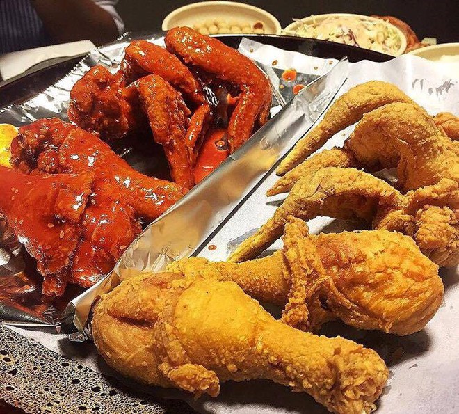 Còn "sang chảnh" hơn thì có thể gọi suất gà rán hấp dẫn ở các quán Hàn Quốc với giá tiền "nhỉnh" hơn, tầm 300k trở lên. Nhưng bù lại bạn sẽ có thêm các loại sốt đi kèm như phô mai, tương... đa dạng hương vị.
