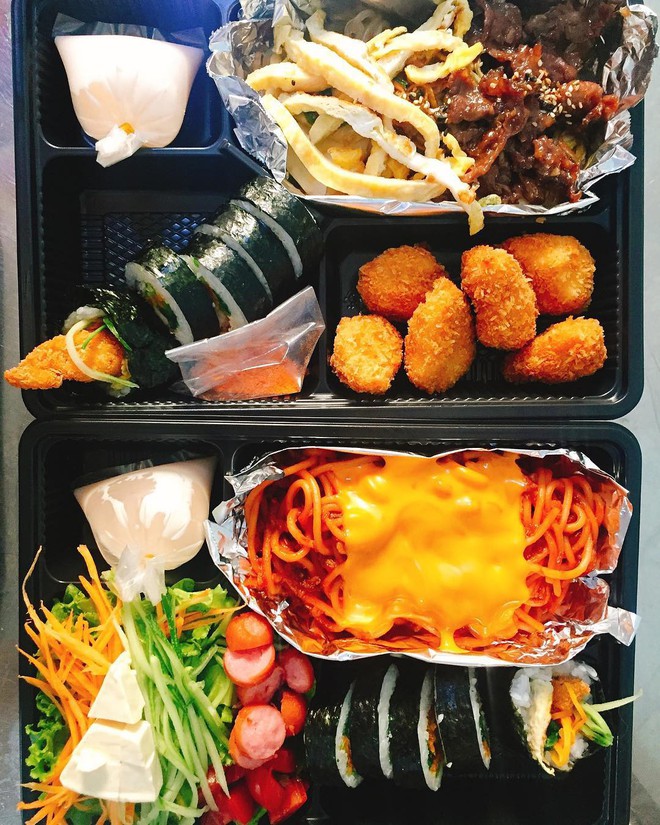 Ăn món Hàn thì phải đầy đủ kimbap, cơm trộn, mì cay hay gà phô mai... mới đúng bài. Nhưng chẳng ai có thể ăn một mình hết ngần ấy món và cũng chẳng nơi nào bán chút ít để bạn gọi. Bởi thể giải pháp là "chiêu dụ" một vài người đồng nghiệp để gọi hẳn một set món Hàn cùng chia nhau ăn.