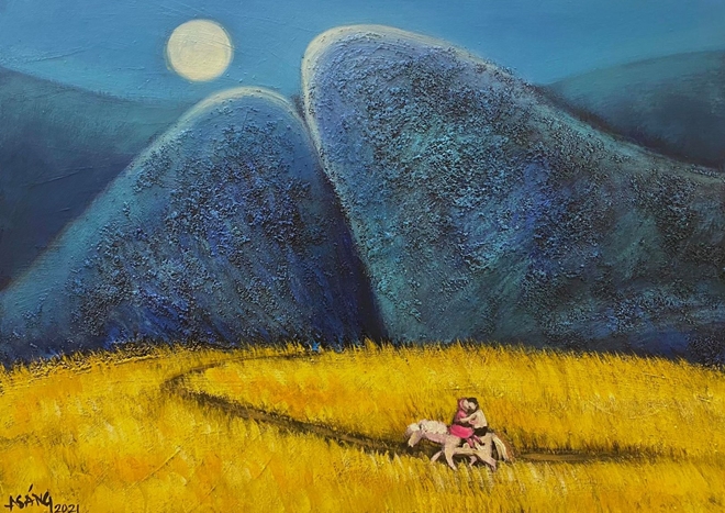 | Ký ức Trùng Khánh, tranh của Hoàng A Sáng. |