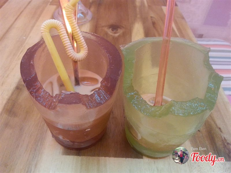 Xem thông tin quán tại đây: http://www.foody.vn/ho-chi-minh/monkey-in-black 2. Saigon Juice Là quán đi đầu trong trào lưu "nhai luôn ly, ăn luôn tách" . Saigon Juice độc đáo với những chiếc ly đủ màu sắc đựng sinh tố bằng rau câu, những chiếc ly rau câu được làm từ rau củ rất bổ dưỡng.