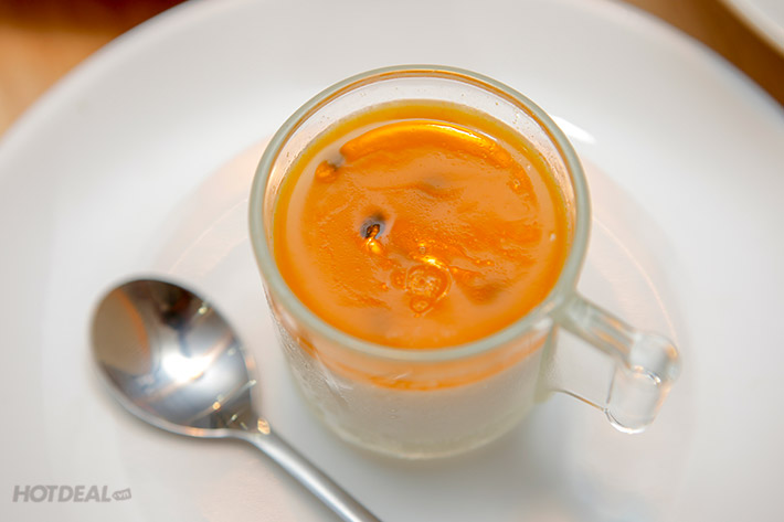 Nếu bạn là tín đồ của các món ngọt thì ắt hẳn ko thể bỏ qua món Panna Cotta. Món ăn là sự kết hợp giữa vị béo béo của kem hoà quyện cùng với lớp chanh dây chua chua ngọt ngọt. Giữa cái tiết trời nóng bức của Sài Gòn mà được cùng người thân, gia đình, bạn bè thuởng thức những món ăn ngon kết hợp với tráng miệng vị chua ngọt béo đảm bảo bạn sẽ mê mẩn ngay thôi.