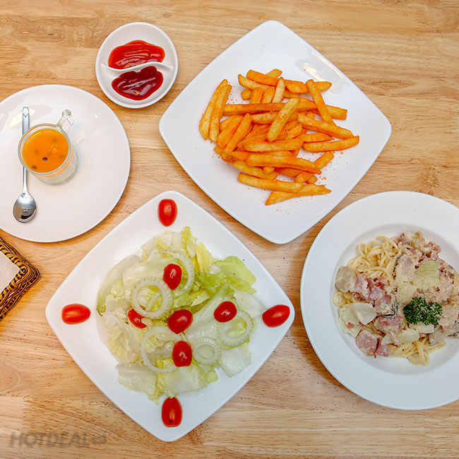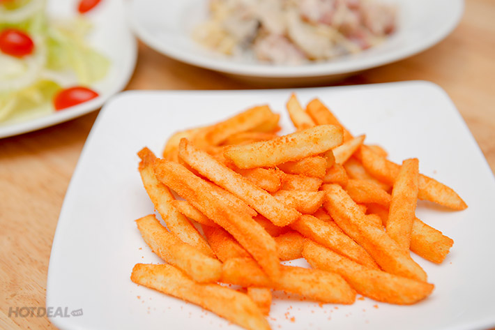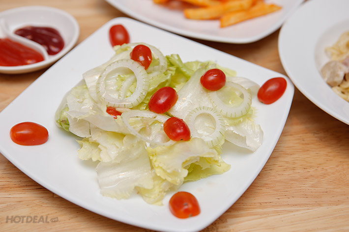 Bữa ăn sẽ thêm thú vị với các món salad tươi mát được phối trộn từ các loại rau quả tươi ngon với nước sốt gia vị hài hòa, hay thêm phần hứng khởi với món khoai tây lắc phô mai béo ngậy.