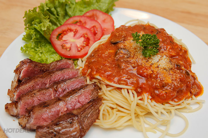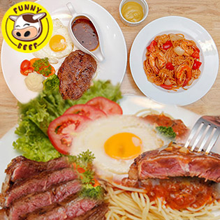 Mỳ Ý Sốt Bò Bằm Oliu - Funny Beef - Spaghetti & Beefsteak