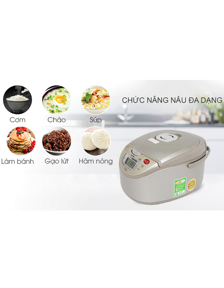 11 chức năng : 7 chức năng nấu cơm (nấu gạo trắng, nấu gạo không vo, nấu cơm trộn, nấu gạo lức, nấu gạo còn Amino Acid, nấu cháo, nấu cơm nhanh), lên men làm bánh, làm bánh, luộc trứng, nấu tàu hủ và giữ ấm