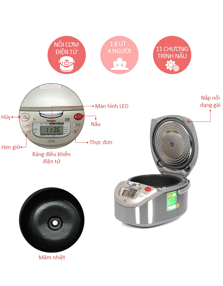 Nồi Cơm Cao Tần Toshiba 1.8 Lít RC-18IX1PV - Hàng Chính Hãng | Tiki
