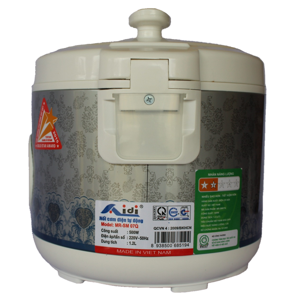 Nồi Cơm Điện Tự Động Nắp Gài Aidi MR-SM 07Q (1,2 lít) - Màu Ngẫu Nhiên - Chính Hãng với lòng nồi được phủ lớp chống dính Whitford (USA) cao cấp, mâm nhiệt lớn từ đó tỏa nhiệt đều, giúp cơm được nấu ngon hơn và nhanh chóng hơn. Sản phẩm còn có màu sắc cùng hoa văn tươi tắn, chắc chắn sẽ là sự lựa chọn đúng đắn cho không gian bếp sang trọng của gia đình bạn.THIẾT KẾ BỀN CHẮC – TIỆN DỤNG – AN TOÀN