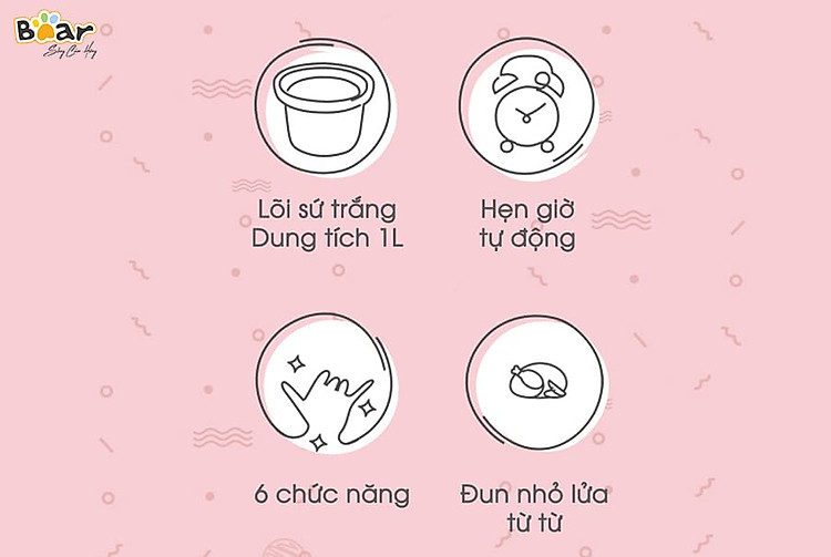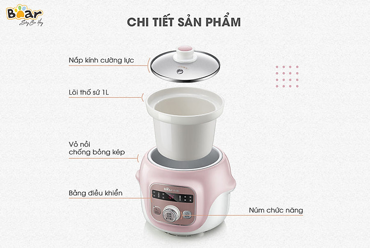 NỒI NẤU CHÁO HẦM NẤU ĐA NĂNG CÁCH THỦY BEAR 1 LÍT ...