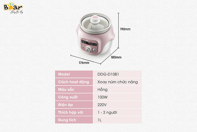 Nồi Nấu Chậm 1L BEAR DDG-D10B1S - Hàng Chính Hãng | Tiki