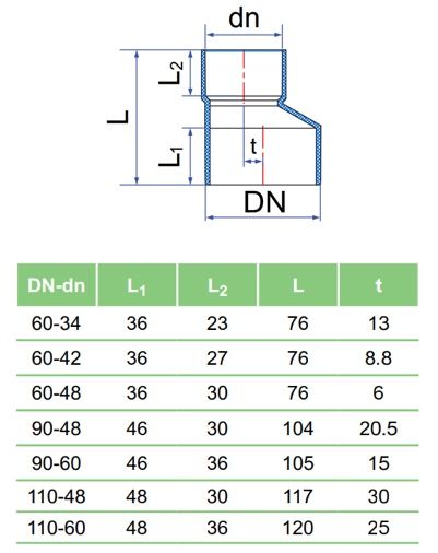 Thông số kỹ thuật Nối thẳng chuyển bậc lệch tâm uPVC DN6042 (TC3633)