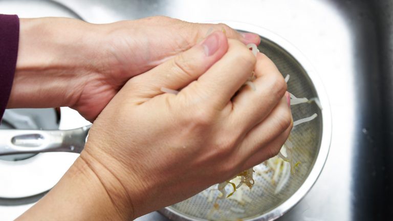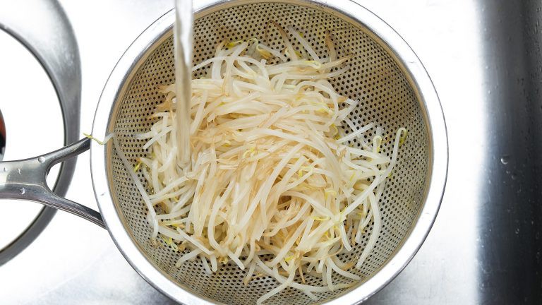 Vắt bớt nước ở giá đỗ, sau đó cho vào tô.