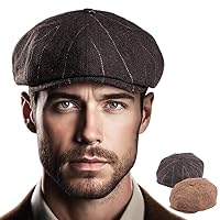 LADYBRO 2パック 8パネルキャスボーイハット メンズ キャビーウールブレンド ツイード アイリッシュキャップ 調節可能, チェック柄ブラウン+ダークブラウン 2パック, Large-X-Large 1,326,189đ