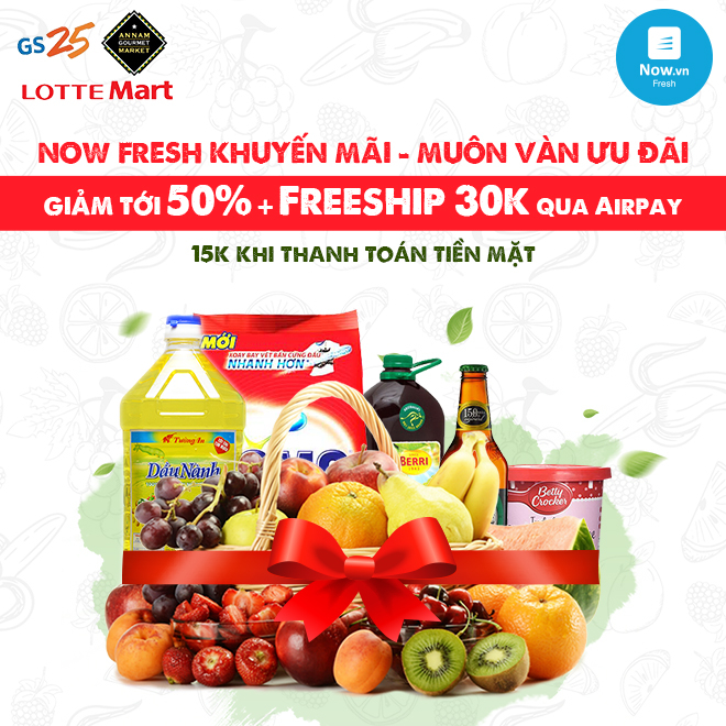 Đi chợ ư? Xưa rồi, đi siêu thị à? Cũng tiện đấy nhưng đi siêu thị online mới là xu hướng của thời đại. Now Fresh đi chợ dùm bạn, chỉ 1 cú click chuột cả siêu thị Lotte, GS25, AnNam Gourmet…hiện ra ngay trước mắt chị em, không những thế, “đi chợ online” trên Now Fresh còn được miễn phí ship và giảm tới 50% đó nha.