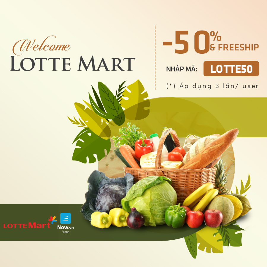 Giờ cùng điểm danh 1 số “anh lớn” đang có nhiều khuyến mãi hấp dẫn trên NowFresh nào:1. Chuỗi siêu thị Hàn Quốc LOTTE MART (giảm 50%)