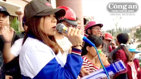 | Trần Thị Xuân hô hào kích động gây rối tại UBND H. Lộc Hà vào ngày 3-4-2017. |