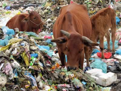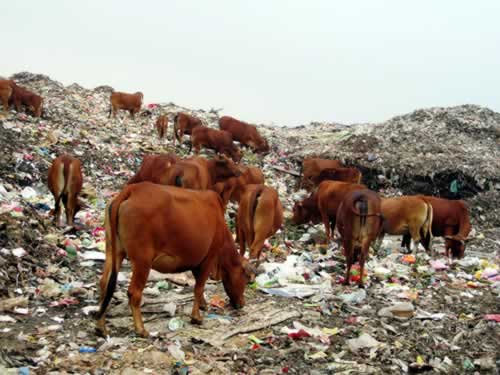 | Bò ăn rác thải dễ sinh bệnh rất nguy hiểm. |