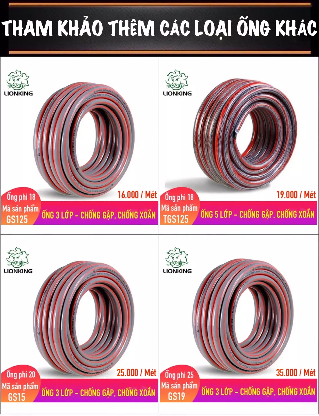 Ống Nước LionKing GS19 - Phi 25 Kết Cấu 3 Lớp Chống Gập, Chống ...