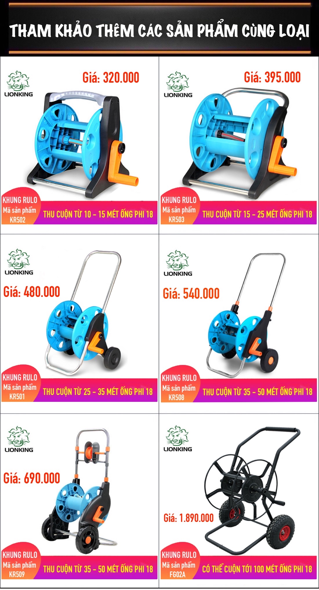 Khung rulo cuộn ống LionKing KR502 - cuộn ống có độ dài từ 10 - 15 mét ống phi 18