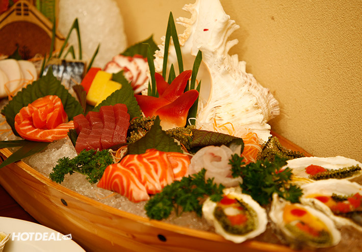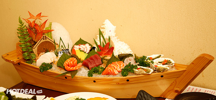 + Thuyền sashimi với 10 loại siêu hấp dẫn lên tới 40 miếng cho 2 người (như bạch tuộc, sò đỏ, hàu...)