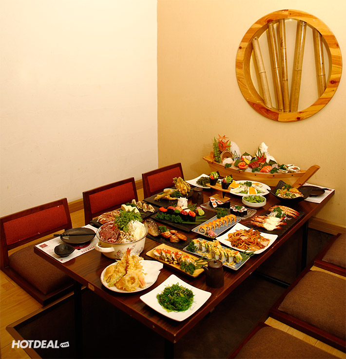 - Thực đơn nhà hàng rất đa dạng, gồm nhiều thể loại món Nhật truyền thống: sashimi, sushi, hotpot, mì udon, món nướng...