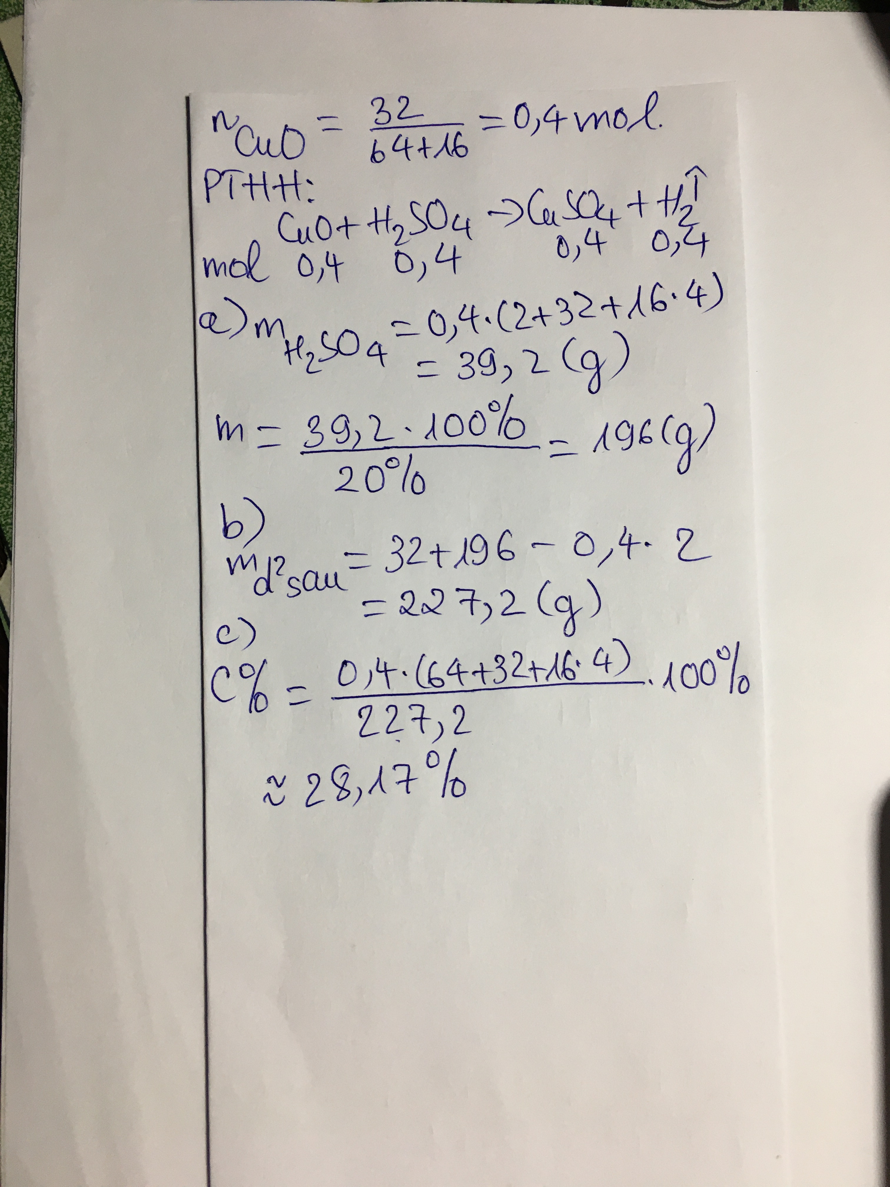 Tìm MH2SO4 Khi Cho 32 G CuO Tác Dụng Vừa đủ Với H2SO4?