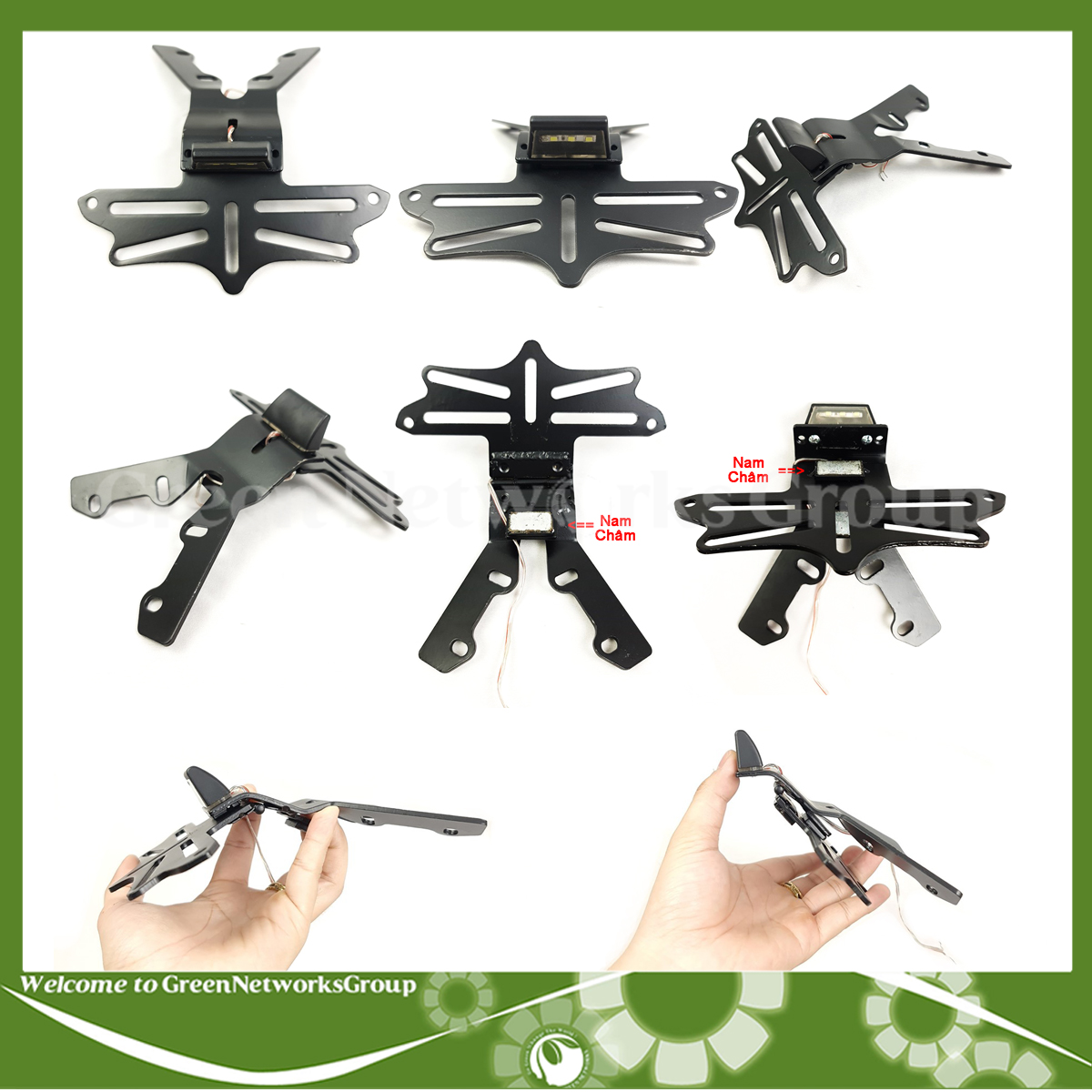 Pat biển số đút gầm xe Exciter 150 tích hợp đèn led soi biển gập 2 chiều Green Networks Group ( 1 Cái )