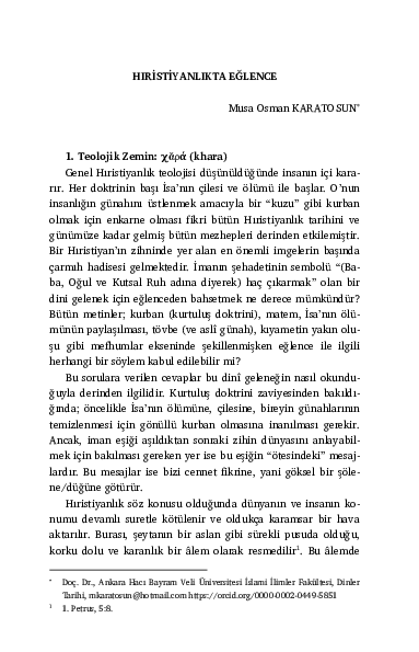 Hıristiyanlıkta EglenceMusa Osman Karatosun