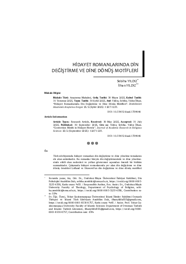 HİDAYET ROMANLARINDA DİN DEĞİŞTİRME VE DİNE DÖNÜŞ MOTİFLERİSebiha YILDIZ