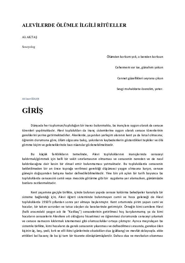 Alevîlerde Ölümle İlgili RitüellerAli Aktaş