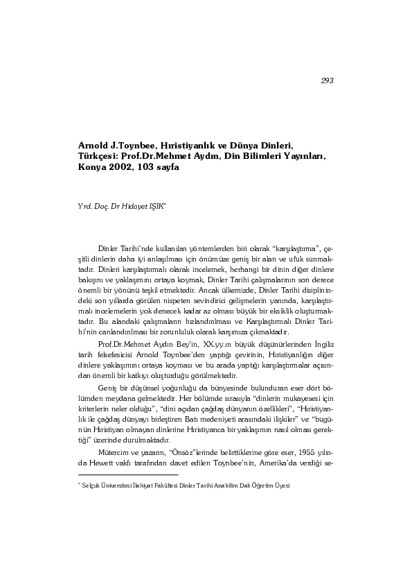 SUIFD14__Hıristiyanlık Ve Dünya Dinleri-Hidayet Işık (p293-301)Necmettin Erbakan Üniversitesi İlahiyat Fakültesi Dergisi