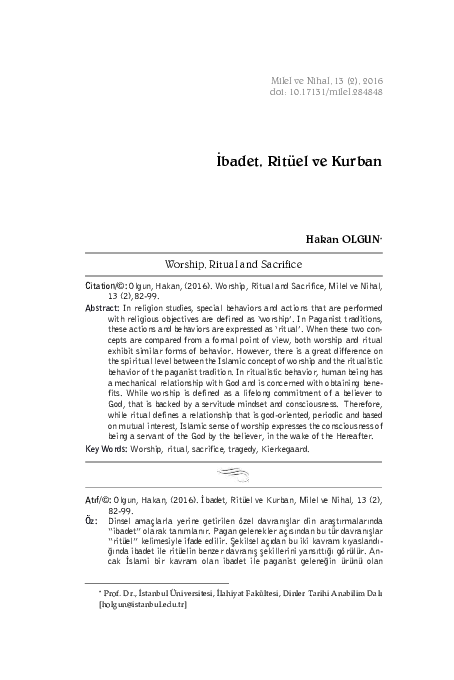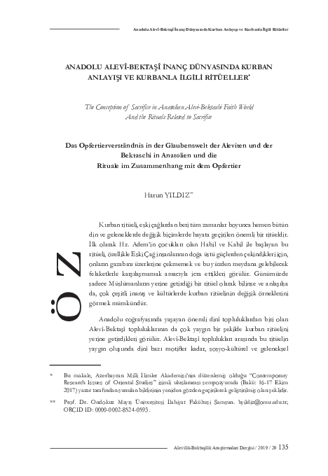 Anadolu Alevî-Bektaşî İnanç Dünyasında Kurban Anlayışı ve Kurbanla İlgili Ritüeller