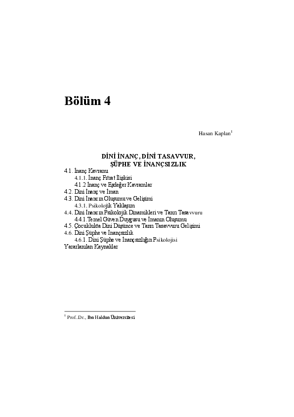 DİNİ İNANÇ, DİNİ TASAVVUR, ŞÜPHE VE İNANÇSIZLIKHasan Kaplan