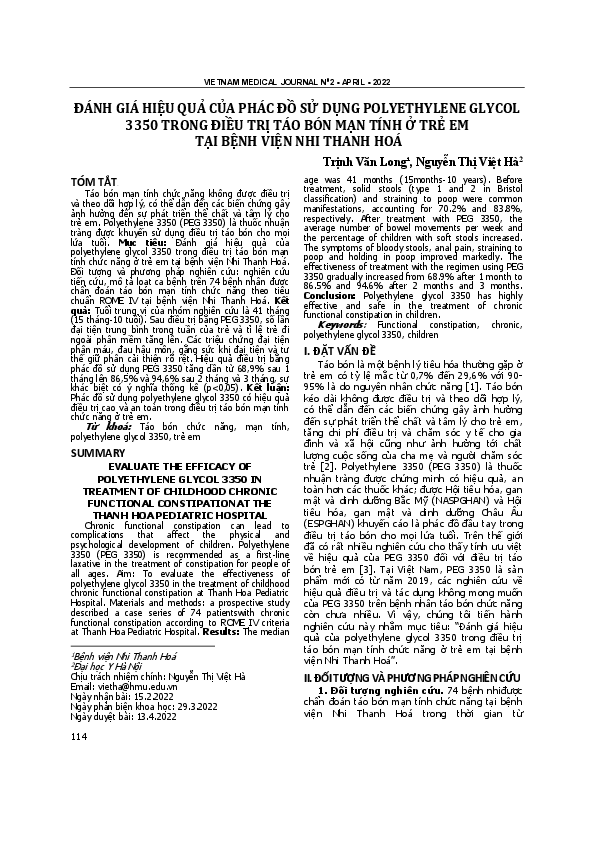 rene lebouttedownloadDownload free PDFĐánh Giá Hiệu Quả Của Phác Đồ Sử Dụng Polyethylene Glycol 3350 Trong Điều Trị Táo Bón Mạn Tính Ở Trẻ Em Tại Bệnh Viện Nhi Thanh Hoá