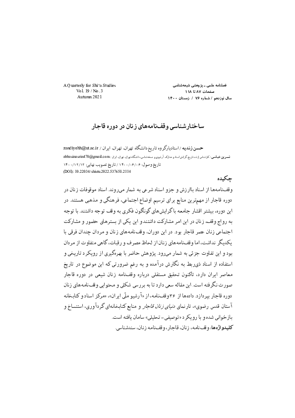 موسی حاجیانیdownloadDownload free PDFساختارشناسی وقفنامههای زنان در دوره قاجار