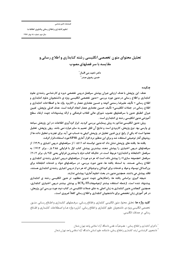 arrow_back_iosتحلیل محتوای متون تخصصی انگلیسی رشته کتابداری و اطلاع رسانی و مقایسه با سر فصلهای مصوبحسن صدرdownloadDownload free PDFAbstract