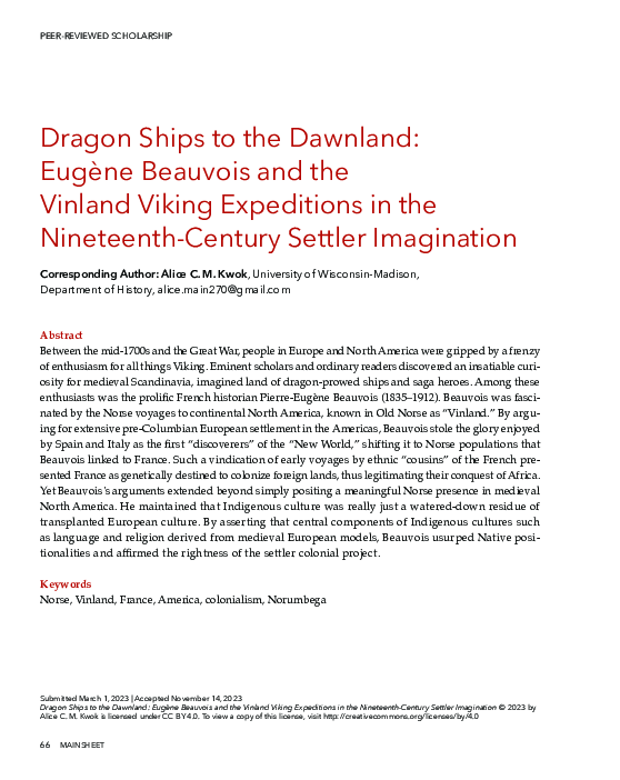 Johan NicolaydownloadDownload free PDFDragon Ships to the Dawnland: Eugène Beauvois and the Vinland Viking Expeditions in the Nineteenth-Century Settler Imagination
