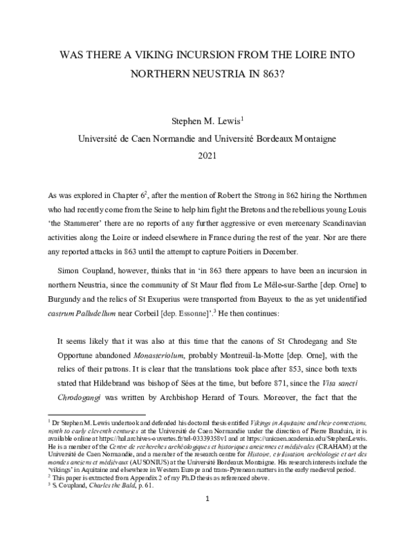 WAS THERE A VIKING INCURSION FROM THE LOIRE INTO NORTHERN NEUSTRIA IN 863?