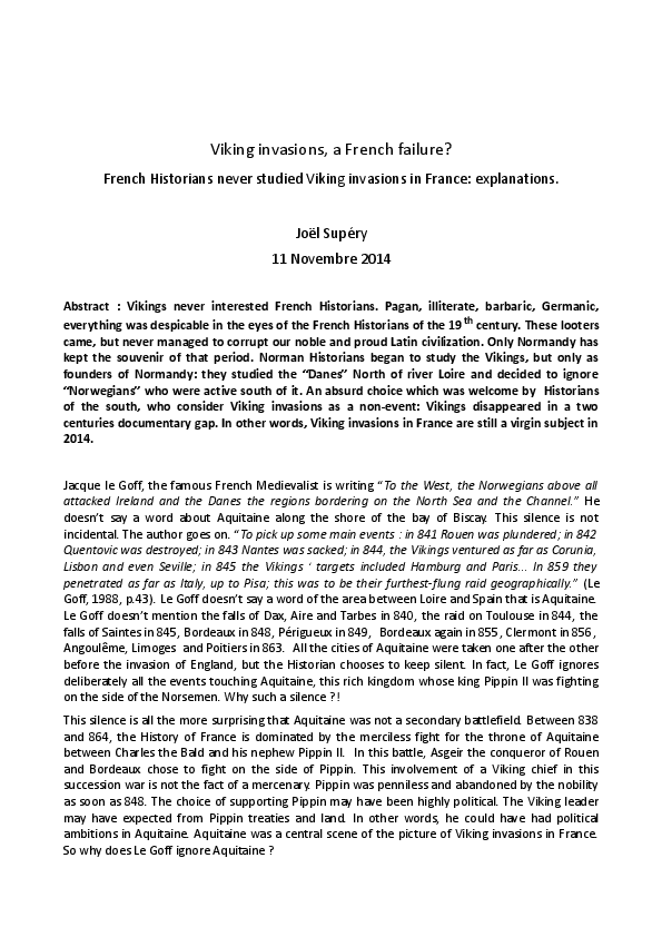 Joel SuperydownloadDownload free PDFSOME ASPECTS OF VIKING RESEARCH IN FRANCE