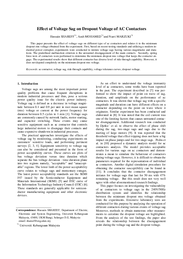 Effect of Voltage Sag on Dropout Voltage of AC ContactorsHussain Shareef