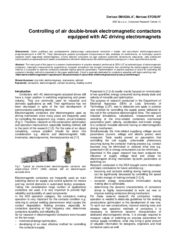 Controlling of air double-break electromagnetic contactors equipped with AC driving electromagnetsMariusz Stosur