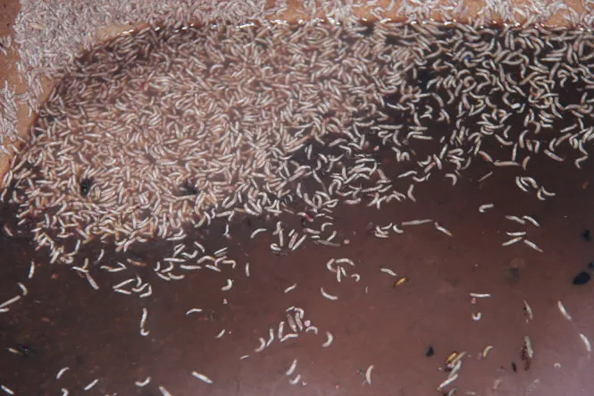 Dòi bò lúc nhúc trong mắm tôm tại một cơ sở sản xuất mắm không phép tại Bình Dương gần đây. Hình minh họa.