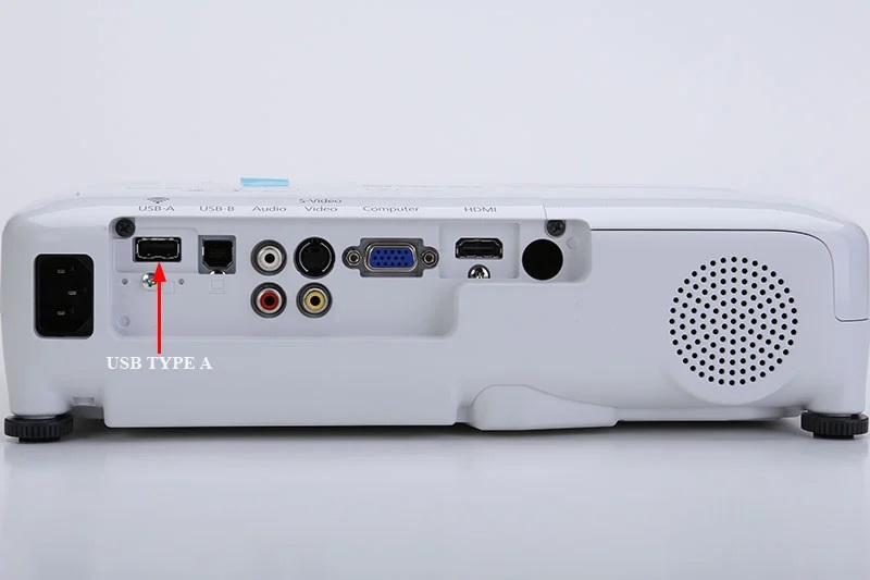Cổng USB Type A là cổng kết nối thông dụng, được trang bị trên hầu hết các sản phẩm máy chiếu hiện đại. Cổng USB Type A cho phép máy chiếu kết nối với các thiết bị lưu trữ USB, máy tính, hoặc tất cả những thiết bị có tích hợp cổng USB Type A.