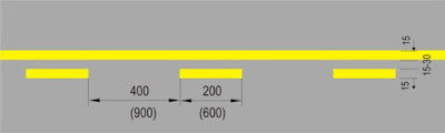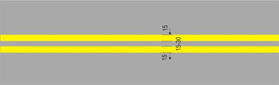 - Dùng để phân chia các làn đường ngược chiều nhau và không có dải phân cách ở giữa; các phương tiên được phép cắt qua để sử dụng làn ngược chiều từ cả hai phía.Vạch vàng nét liền đôi