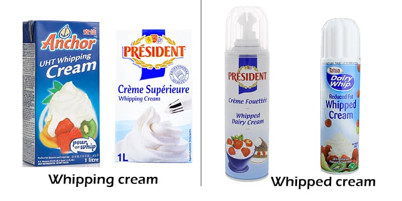 Whipping cream có hai loại: kem tự đánh bông ( Whipping Cream) và kem đã đánh bông (Whipped Cream)