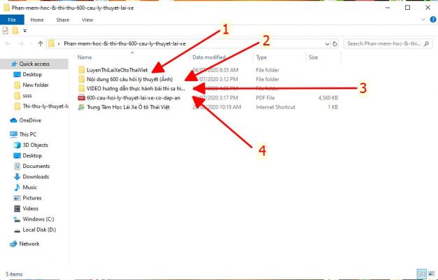 1. Thư mục chứa phần mềm 600 câu hỏi thi lý thuyết lái xe ô tô các hạng B1, B2, C, D, E, F