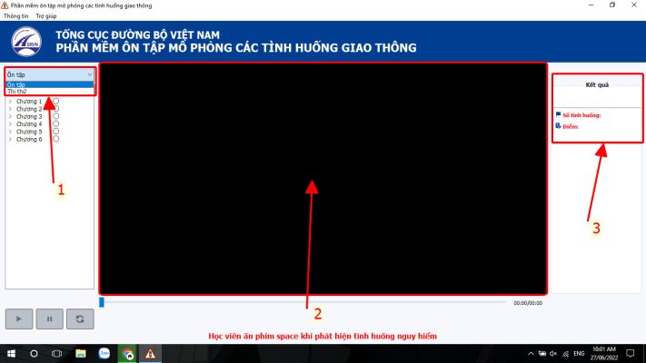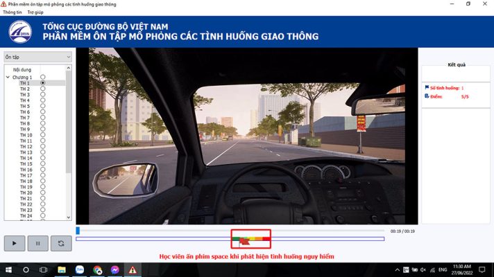Để sử dụng phần mềm ôn tập theo từng tình huống, các bạn thực hiện các thao tác như sau: