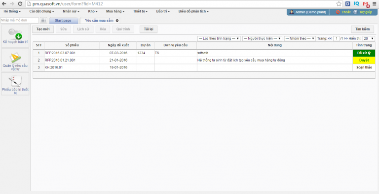 Quản lý kế hoạch bảo trì và vật tư sử dụng