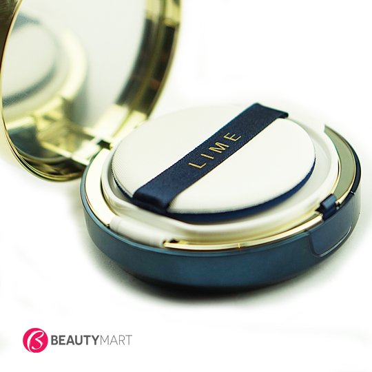 Thiết kế viền vàng kim loại bo tròn trên nền tông xanh đen sang trọng là chủ đạo, nổi bật với chữ LIME đơn giản, tinh tế. Cushion cầm khá chắc tay, cứng cáp, nhỏ gọn tiện lợi, dễ dàng mang đi.