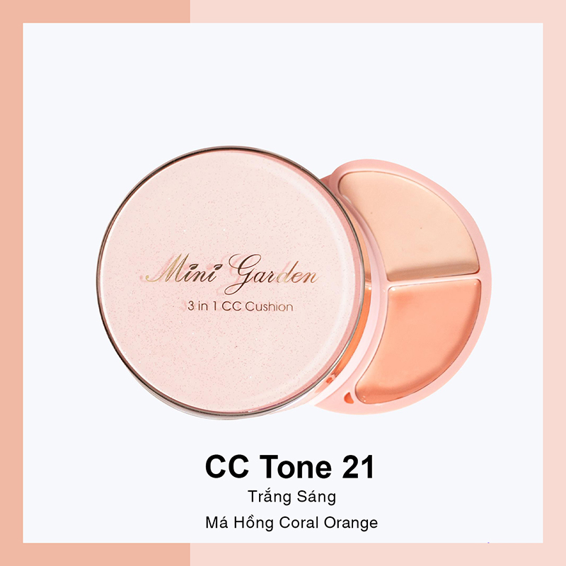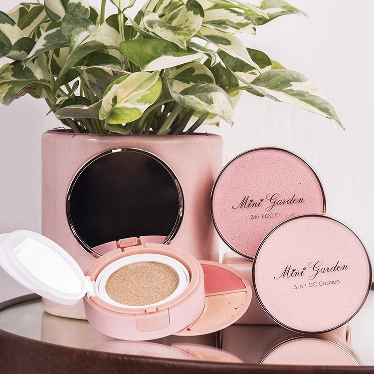 MINI GARDEN 3 IN 1 CC CUSHION tích hợp 3 trong 1 sản phẩm: CC Cushion + Che Khuyết Điểm + Phấn má hồng.