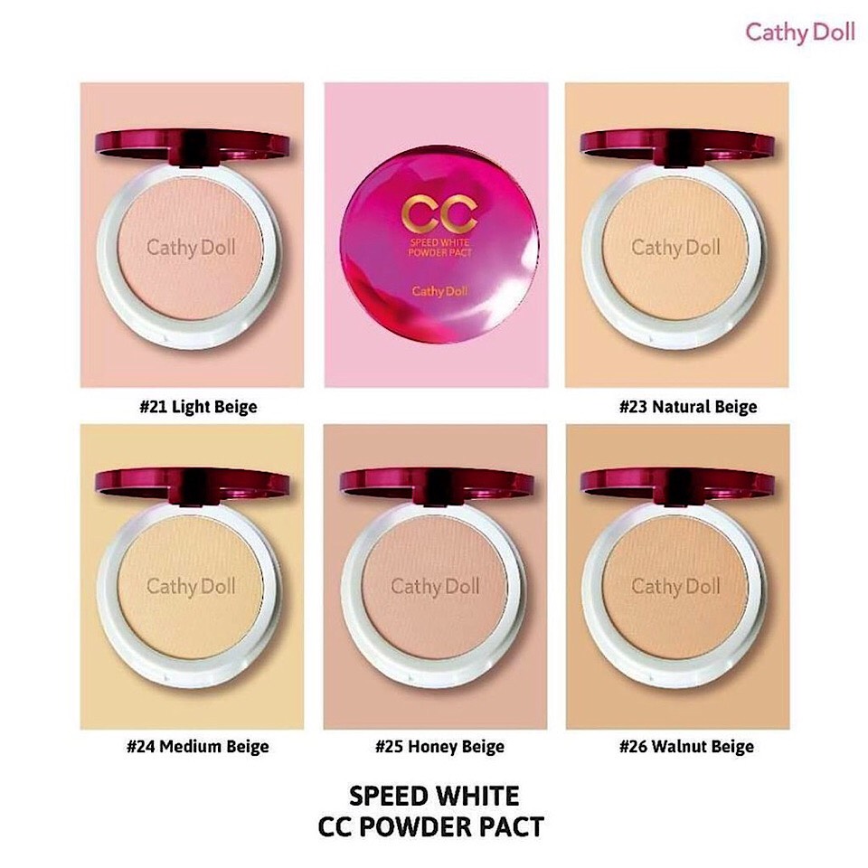 Phấn CC Powder Pact Cathy_Doll Speed White với hạt phấn siêu mịn, mỏng, nhẹ, bám lâu và bền, độ che phủ cao, chỉnh sắc lung linh, làm đều màu da, giúp che khuyết điểm trên khuôn mặt một cách tuyệt đối và hoàn hảo cho các bạn 1 khuôn mặt đẹp không tỳ vết.