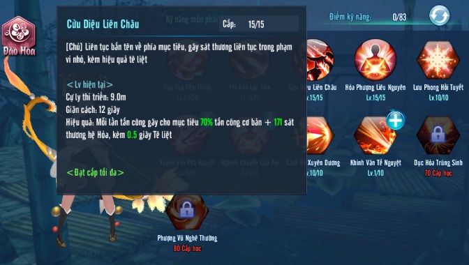 Cộng kỹ năng: Kỹ năng này cần được ưu tiên cộng điểm, bởi vì Đào Hoa Pháo rất cần tăng bộc phát sát thương và bạo kích, tuyệt chiêu này cũng thể hiện đặc sắc của Đào Hoa Phái, do đó cần được ưu tiên lựa chọn!